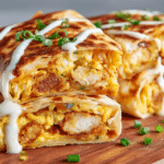 If your mornings are missing something warm, crunchy, and truly satisfying, Crispy Chicken Breakfast Crunchwraps are the solution you didn’t know you needed. This all-in-one breakfast wrap brings together savory breaded chicken, soft scrambled eggs, crisp hash browns, and melted cheese—all wrapped in a large flour tortilla, then pan-toasted until perfectly golden and crisp.