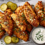 Crispy, golden chicken tenders marinated in dill pickle brine and coated in ranch-seasoned panko, then cooked to perfection in the air fryer. A flavorful, quick, and crunchy dish perfect for weeknights or gatherings.