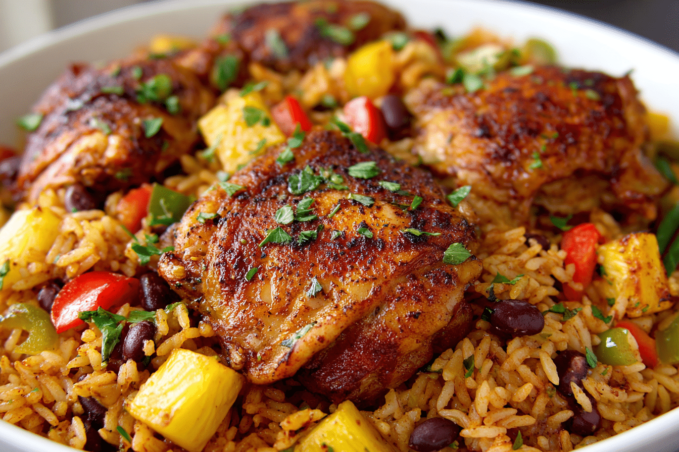 Made in just one skillet, cleanup is minimal, and the payoff is huge: tender, spice-rubbed chicken, perfectly cooked rice, and a medley of colors and textures in every spoonful. From the richness of coconut milk to the subtle kick of thyme and allspice, this dish is a comforting yet vibrant take on Caribbean home cooking.