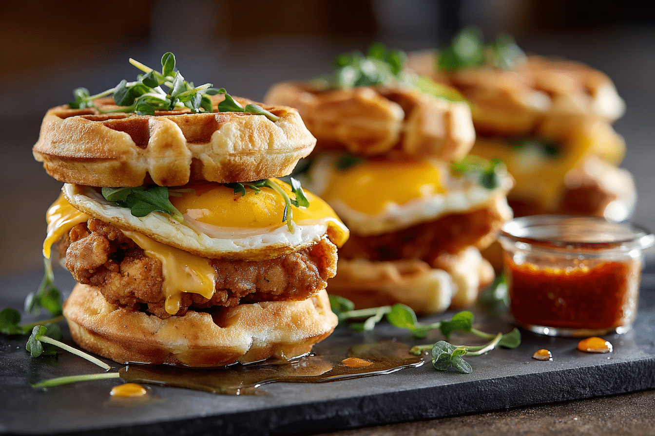 Spicy Chicken & Waffle Breakfast Sliders: 3 Delicious Layers of Sweet Heat and Crunch